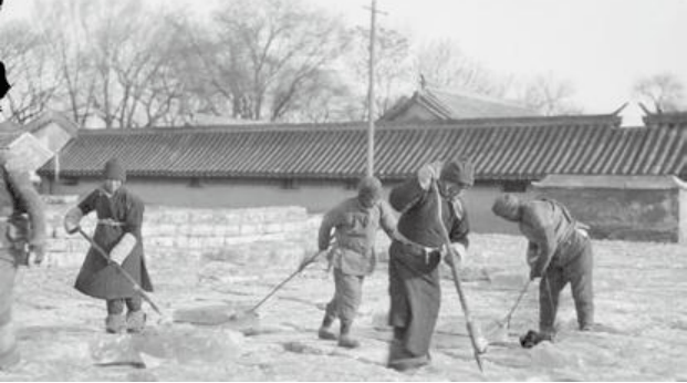 京城的工人采冰储藏冰窖
