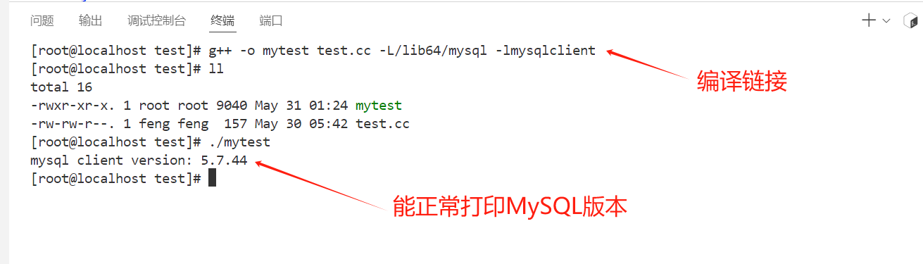 g++ -o mytest test.cc -L/lib64/mysql -lmysqlclient
