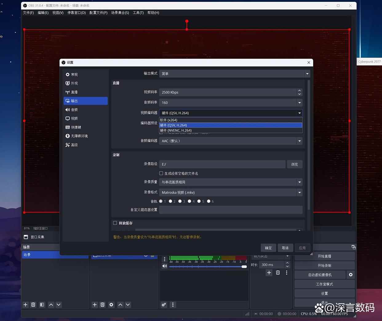 本人日常较喜欢利用OBS Studio软件来录制游戏视频画面,后期用达芬奇或PR等软件剪辑调色,然后分享到各种视频平台,软件支持Intel的QSV与NVIDIA的NVENC硬件视频编码器,分别对应Ultra7 265K处理器的核显,与RTX4070Ti Super 16GB显卡。